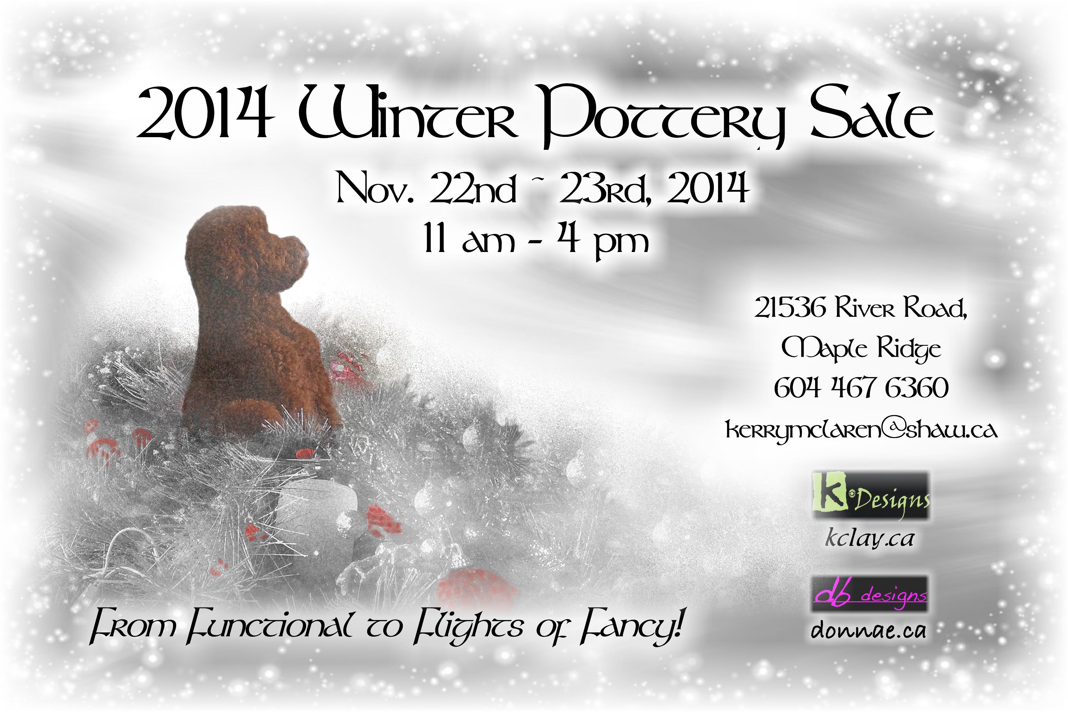 K Designs Winter Pottery Sale 2014 Share this: Click to share on Facebook (Opens in new window) Facebook Click to share on X (Opens in new window) X Click to share on Pinterest (Opens in new window) Pinterest Click to email a link to a friend (Opens in new window) Email Like Loading...